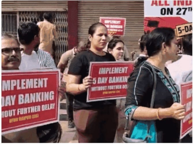 5 डे-वर्किंग बर बैंक कर्मचारी मन के हल्ला बोल: छत्तीसगढ़ म 25 हजार अधिकारी-कर्मचारी हड़ताल म, बैंकिंग काम-काज ठप